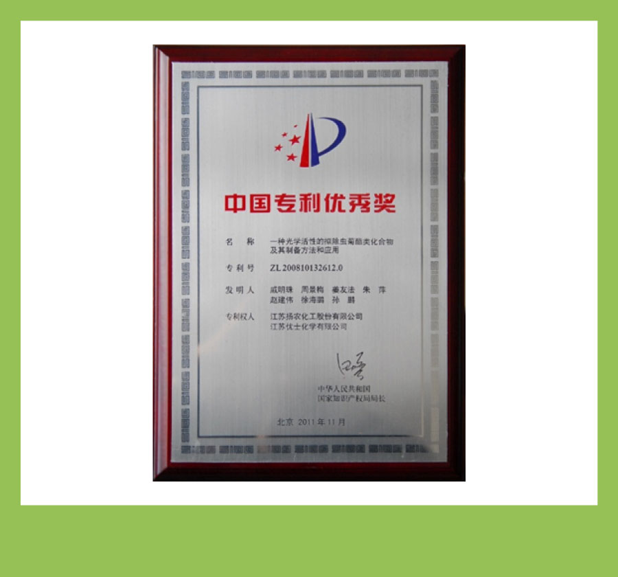 公司的“墨菊”品牌連續(xù)多年獲“江蘇省重點培育和發(fā)展的國際知名品牌”稱號“墨菊”、“優(yōu)士”商標均為中國馳名商標。2020年公司“優(yōu)士”品牌榮獲“江蘇省重點培育和發(fā)展的國際知名品牌”稱號。公司擬除蟲菊酯產(chǎn)品榮獲工信部“制造業(yè)單項冠軍產(chǎn)品”稱號、“綠色高效擬除蟲菊酯開發(fā)項目”獲得中國工業(yè)大獎。