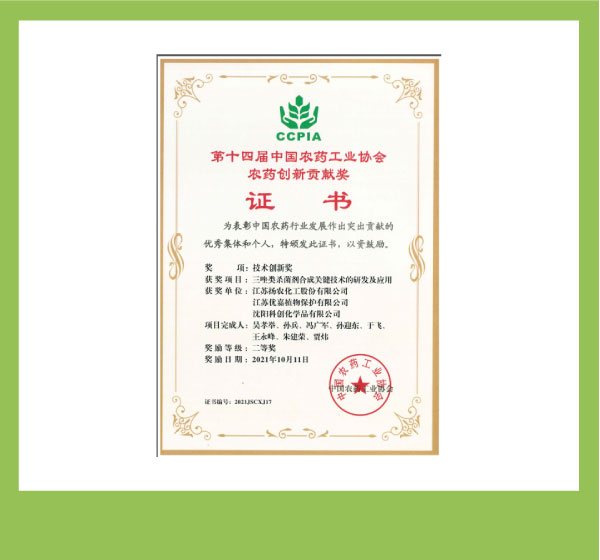 中國農(nóng)藥工業(yè)協(xié)會技術(shù)創(chuàng)新二等獎
